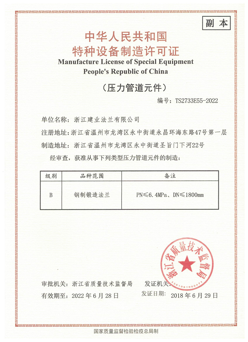 浙江建業(yè)法蘭有限公司,是一家集科研、設(shè)計開發(fā)、制造和經(jīng)營各種管道法蘭等于一體的專業(yè)生產(chǎn)企業(yè),公司以其特有的優(yōu)勢與不懈的努力,在法蘭研制生產(chǎn)的行業(yè)領(lǐng)域中占領(lǐng)了一席之地。公司歷史悠久、實力雄厚、設(shè)備精良、品質(zhì)一流,多年來憑借其雄厚的技術(shù)實力、科學(xué)的經(jīng)營理念、先進的管理模式、過硬的團隊和精良的設(shè)備設(shè)施與卓越的品質(zhì)贏得了市場認(rèn)可和良好的市場聲譽,逐漸發(fā)展成為同行業(yè)的佼佼者。